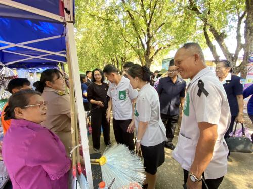 พร้อมทั้งจัดจำหน่ายสินค้าตลาดนัดคนไทยยิ้มได้ สาธิตการทำไม้กวาดจากขวดพลาสติก และเปิดบู๊ท รับสมัครสมาชิกกองทุนพัฒนาบทบาทสตรีอำเภอหนองบุญมาก